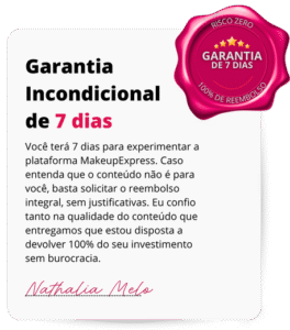 Tenho tanta certeza que você vai amar o MakeupExpress e ter resultados incríveis, que te dou 7 dias para testar o curso sem riscos.