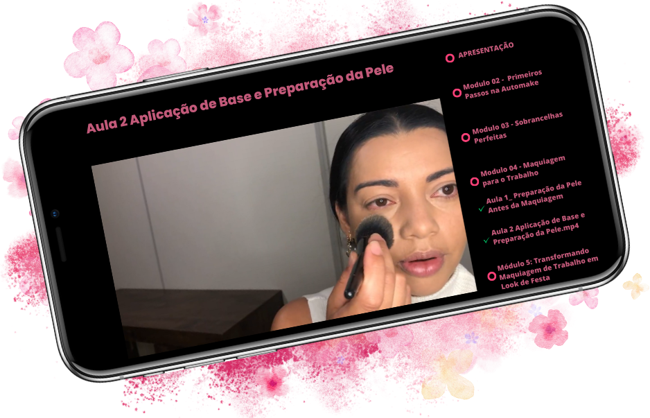 Criei o curso MakeupExpress porque cansei de ver mulheres inseguras com sua aparência, gastando com produtos errados e se frustrando ao tentar copiar tutoriais de internet que não mostram o “como fazer” de verdade.